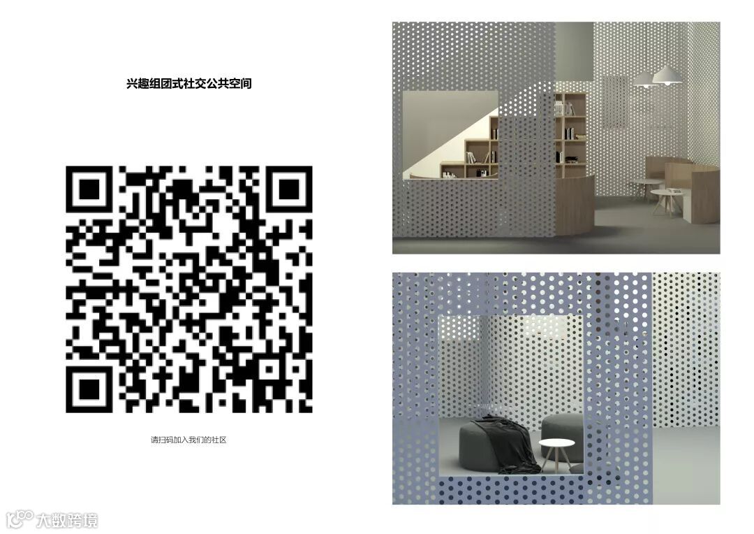 二维码的设计看出设计团队的创意与心思,给评委们和创寓团队带来深刻的印象与讨论,使设计不仅仅停留在现实建筑上,使年轻人热爱的虚拟社区与现实社区巧妙地结合,为社区的运营创造了更多思考的空间。