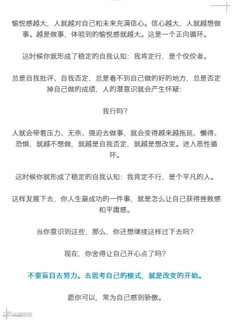 治疗自我否定最好的方式,不是自我安慰我很好了,而是行动起来。用行动来改变现状,重新获得对自我的掌控感。