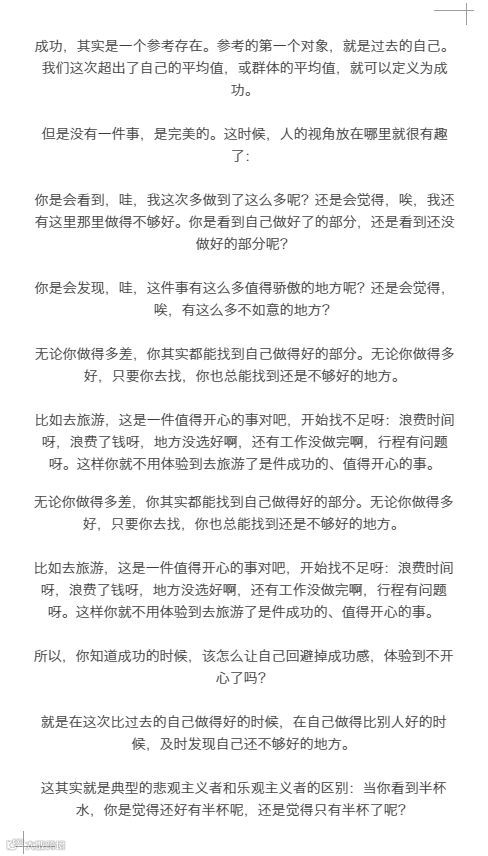 即使一个人总是充满自我怀疑、自卑、自我否定,即使他总是活在焦虑、担心、恐惧中,即使是对时代的下滑、环境的改变都感觉到悲观,这些都不影响他的生活中,会充满一些小的成功,得意的事情。