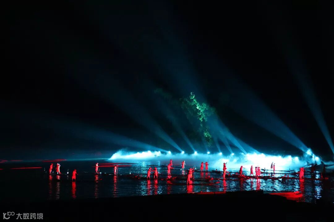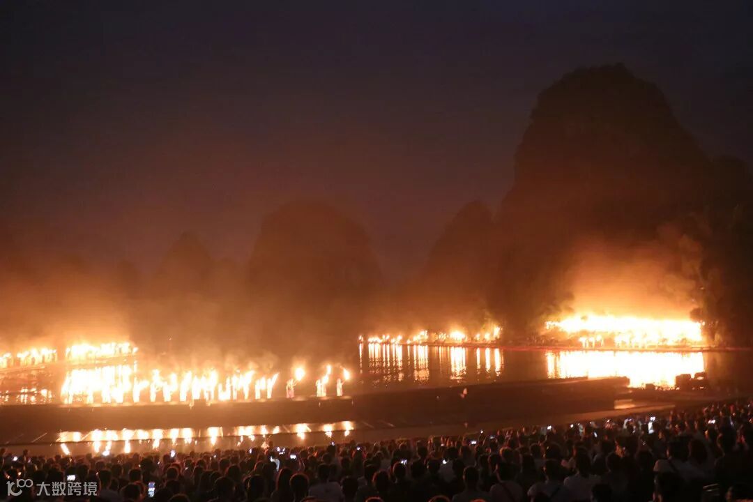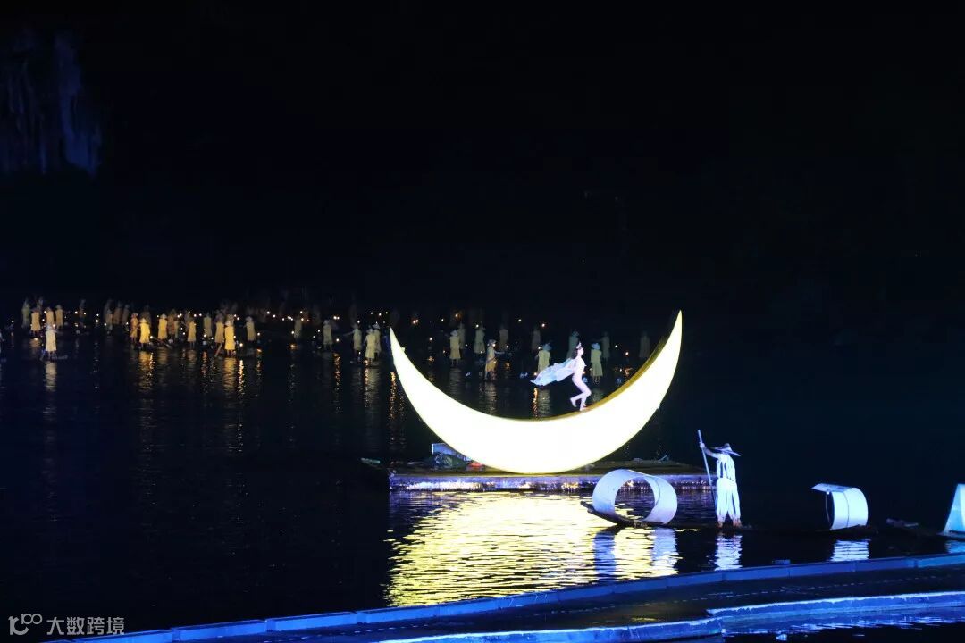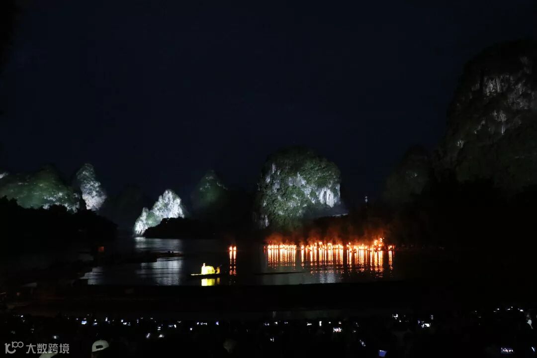 15号晚上,第六站,震撼舞台剧——印象·刘三姐。一天充实的游玩归结于一场浪漫盛大的演出。这场演出以自然造化为实景舞台,夜幕之下,12座山峰在灯光的映射下若隐若现,两公里的漓江水域之上,烟雾缭绕,如梦似幻。演员们乘船而入,歌声起,空谷回响,仿若天外之音,舞姿起,翩若惊鸿,恰似仙子回眸。歌舞表演和万千渔火已是震撼人心,漓江岸边对桂林生活图景的展示更是诗意万千,街市、牧童、老牛、浣衣者,做炊者……在人为制造的薄雾之中,景物若隐若现,遥若海市蜃楼。