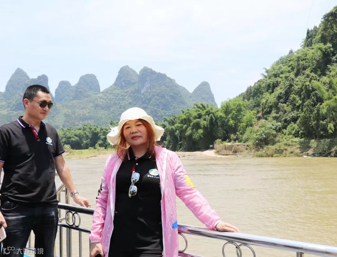 15号下午,第四站,漓江精华——兴坪漓江。登上三星级豪华游船,2个小时的漓江游便开始了。漓江风光自古便负盛名,不由得想起那句古诗,“江做青罗带,山如碧玉簪”。漓江景美,兴坪漓江更是景色的精华所在,立于游轮之上,万千山峦渐次而退,奇峰夹岸,碧水萦回,沿江田园错落分布,景色醉人。大家或静赏美景,细听水声,或互相拍照,谈笑风生,十分悠然。