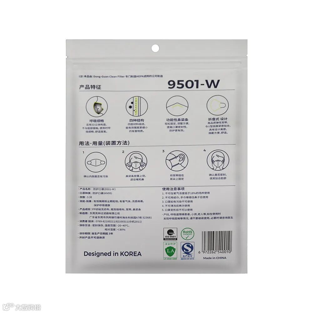 具有良好的销售外观和印刷的适应性, 有助于提高口罩商品价值,在市场上富有吸引力和竞争能力。