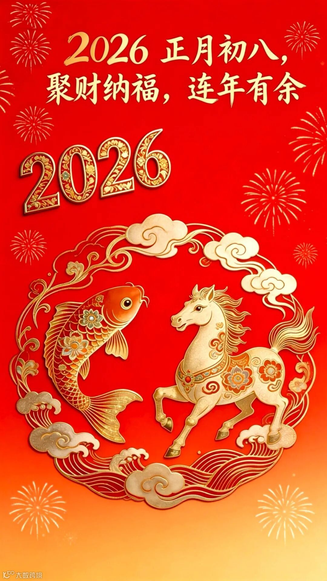 🧨正月初八,福星高照,春意萌新,事事顺心!2026,愿亲友们:身体硬朗,吃嘛嘛香;心情舒畅,喜气洋洋。健康如意心中暖,马年大吉福满堂!🧧🧧🧧