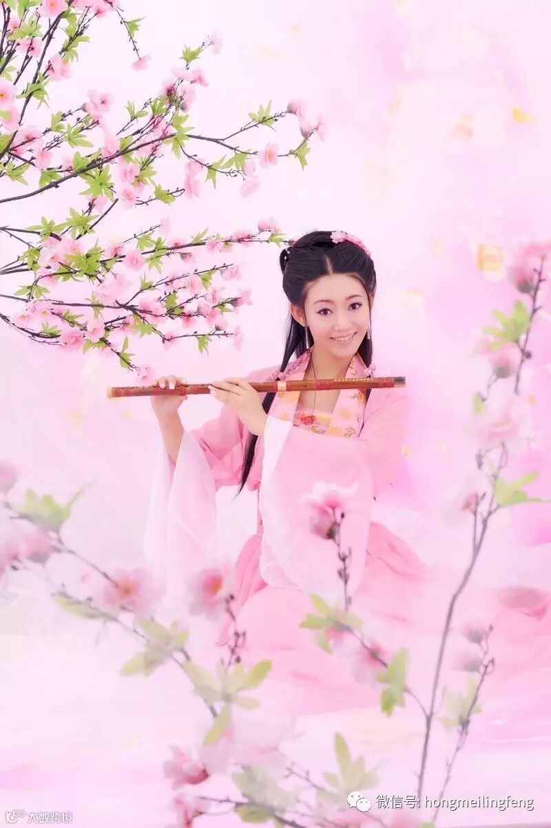 洇开了桃花粉红一片