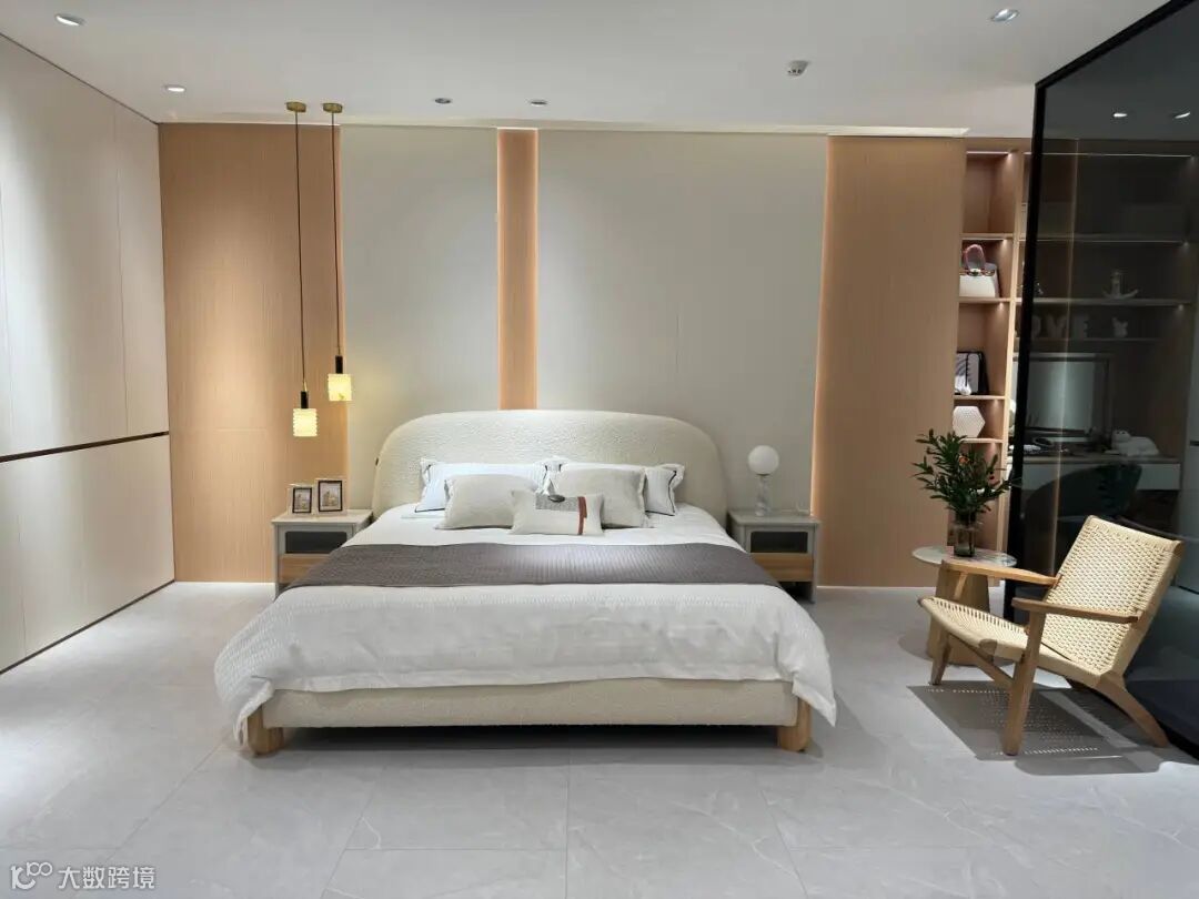 展会现场,A家家居展位人头攒动,热闹非凡。2700㎡展厅设计依托一体化整家的概念,巧妙融合各品类家居产品,打造风格统一的全屋整案空间,高颜值的家居单品和沉浸式空间体验感吸引观众们纷纷驻足,赞叹不已。