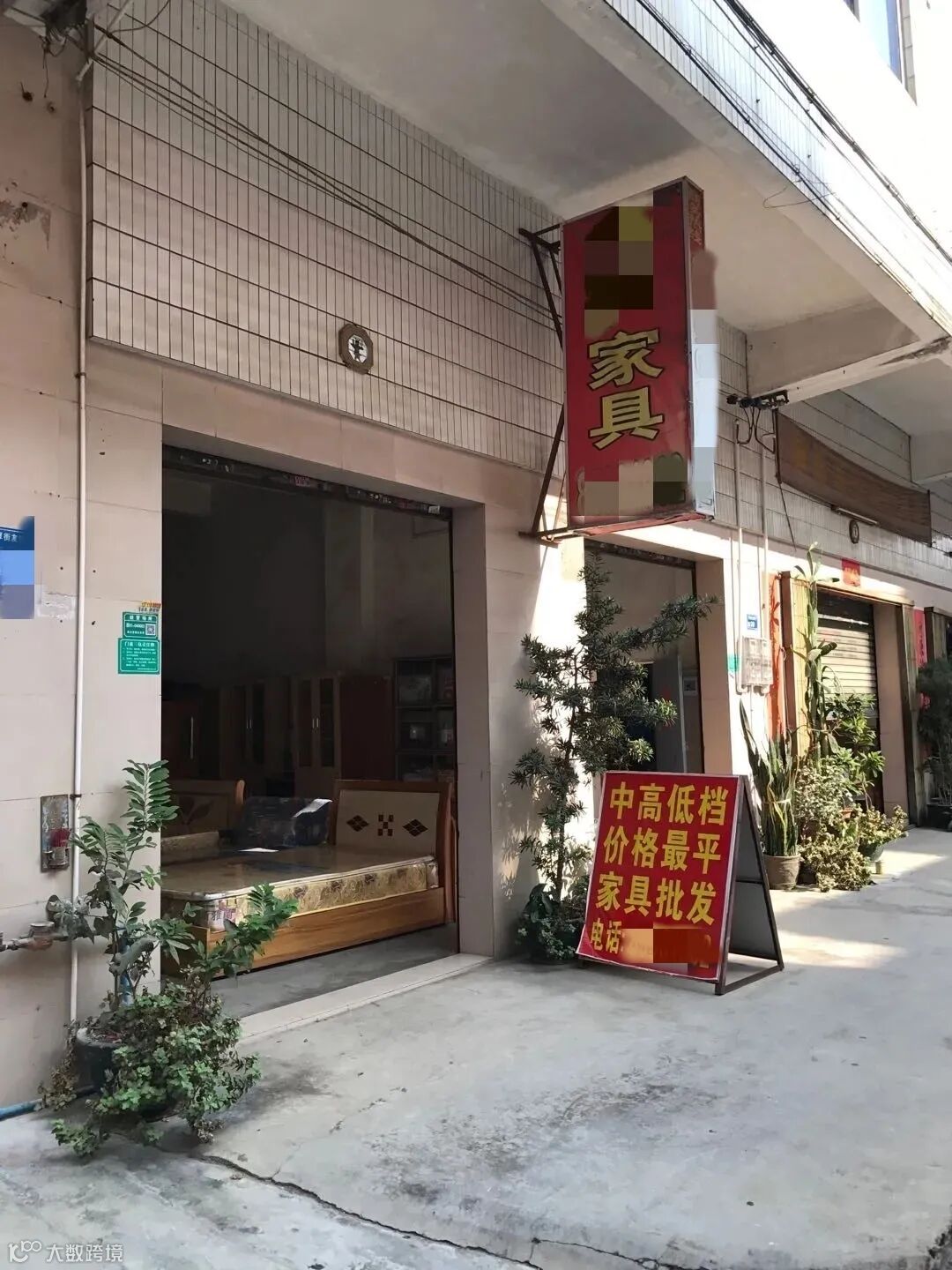 那天下午三点半左右,笔者从厚街大道一侧的恒锋家具博览中心出来后,还想去了解一下厚街的低档家具销售情况,于是就打的去了厚街社区门诊附近的城中村,下车后没走多远就看到了一家名为“××家具商场”的大排挡式家具卖场。
