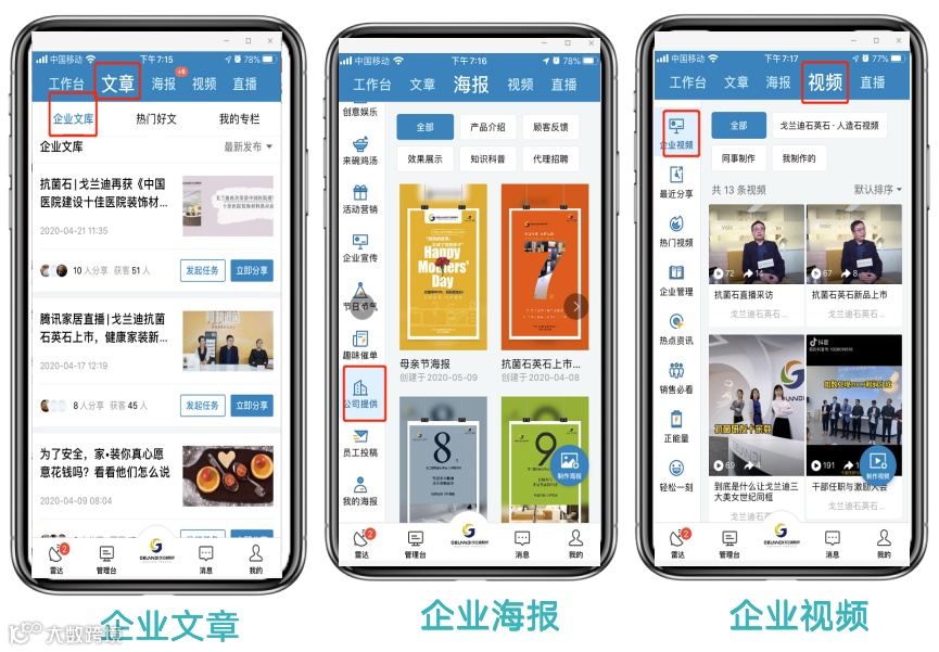 同时,奥田总部制作的优质文章、海报、产品演示/解说视频等内容,可以通过加推系统一键下发给经销商,节约代理商营销成本,持续传递品牌价值。