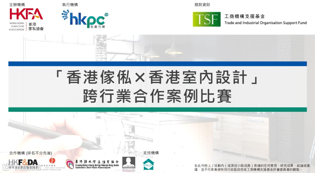 15个最具创新力设计案例×国内最具设计研发态度的企业,让香港家俬×香港室内设计,链接设计与制造,共享香港设计新力量。本次比赛,是一次全香港家居设计总动员,不仅得到香港生产力促进局全力策动,粤港两地的各大商会、协会、家具企业、设计师首次通力合作参赛,别开生面,凝聚香港设计的匠心,可谓是引领粤港澳,星耀大湾区!