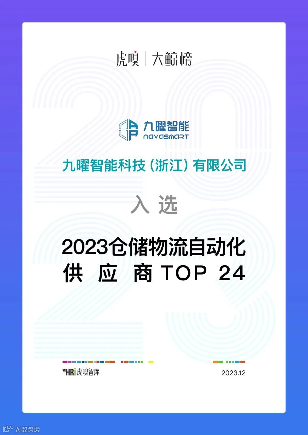 本届“大鲸榜”的评选,重点聚焦在仓储物流自动化、机器视觉检测、AI智慧物流等领域。九曜智能凭借在工业级无人驾驶领域的技术突破及商业落地,入选“虎嗅.大鲸榜2023仓储物流自动化供应商TOP榜单”。
