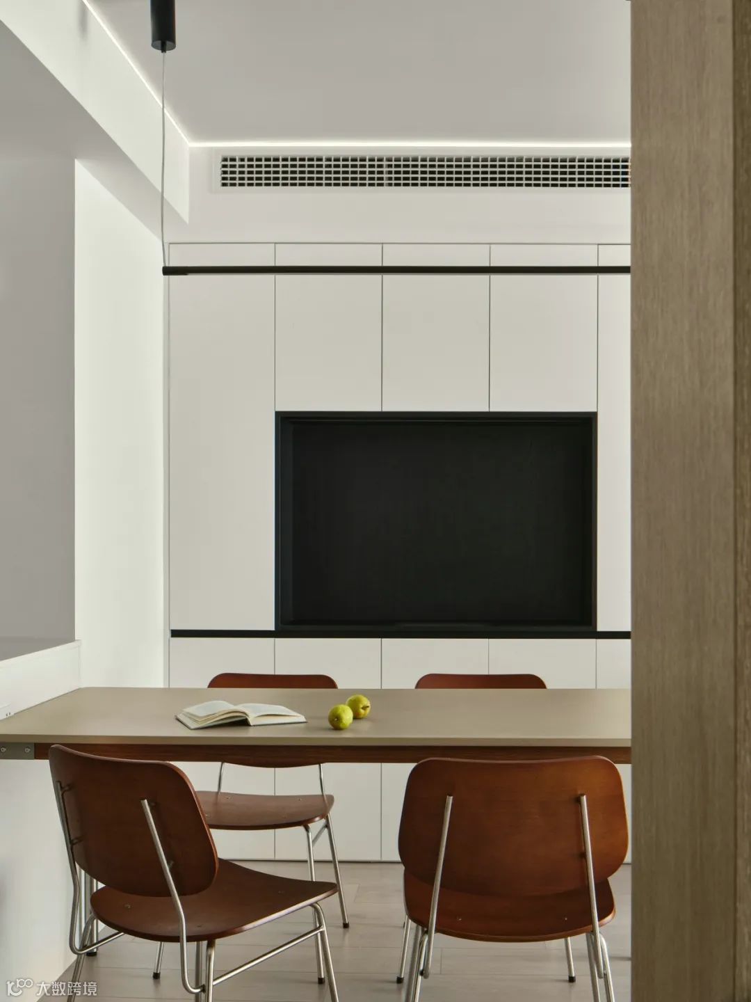 重新设计后客餐厅多了餐边柜和鞋柜,把原户型餐厅变成了书房。