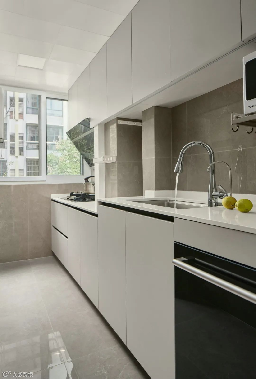 阳台空调机位墙面做成隐藏式柜门,方便检修外兼顾美观性, 同是还掏了一部分做收纳用,一举多得。