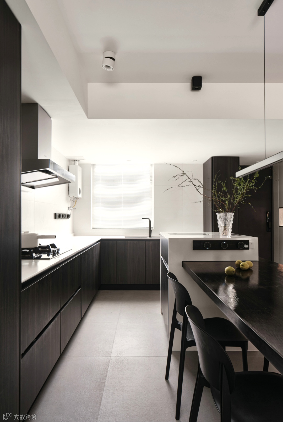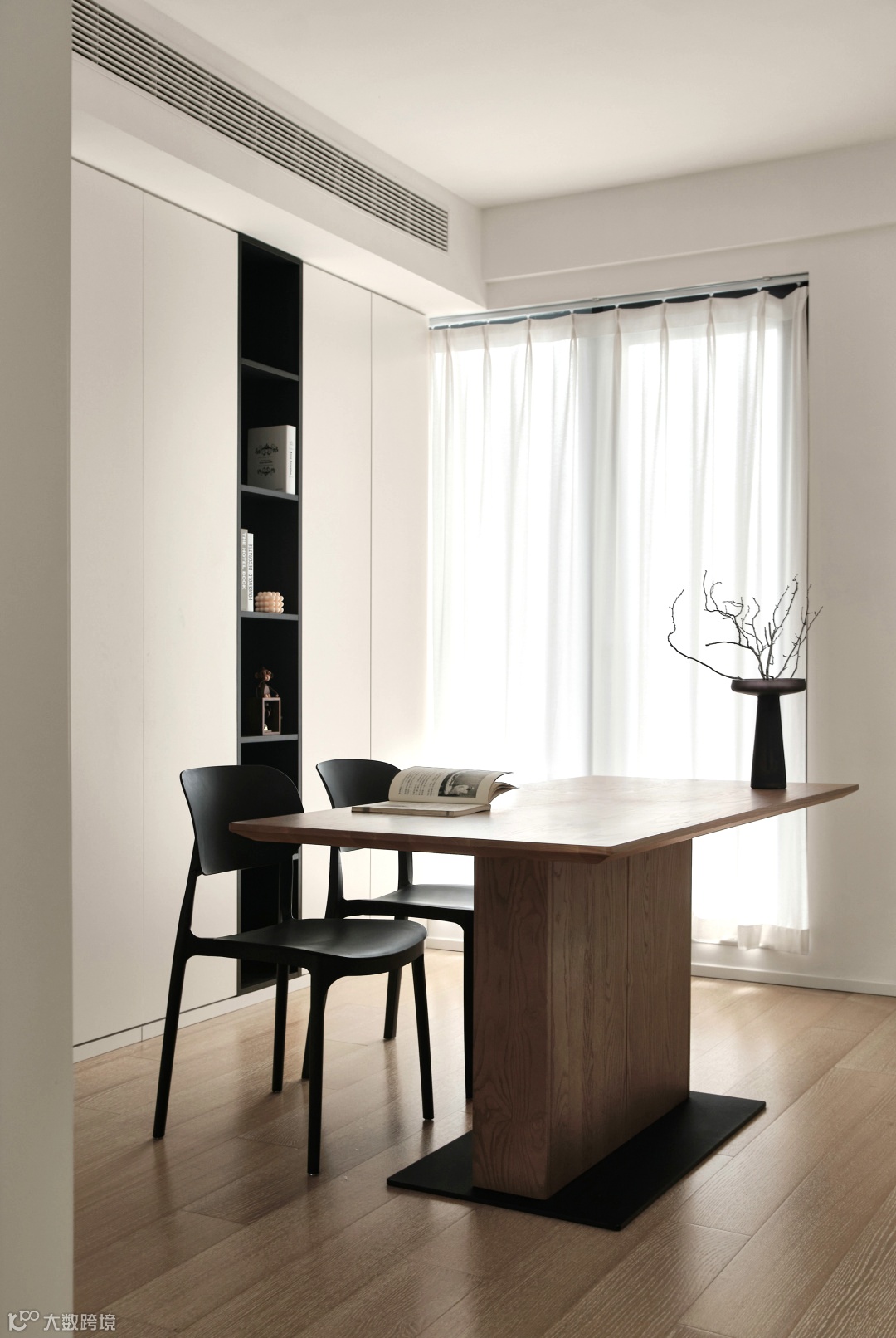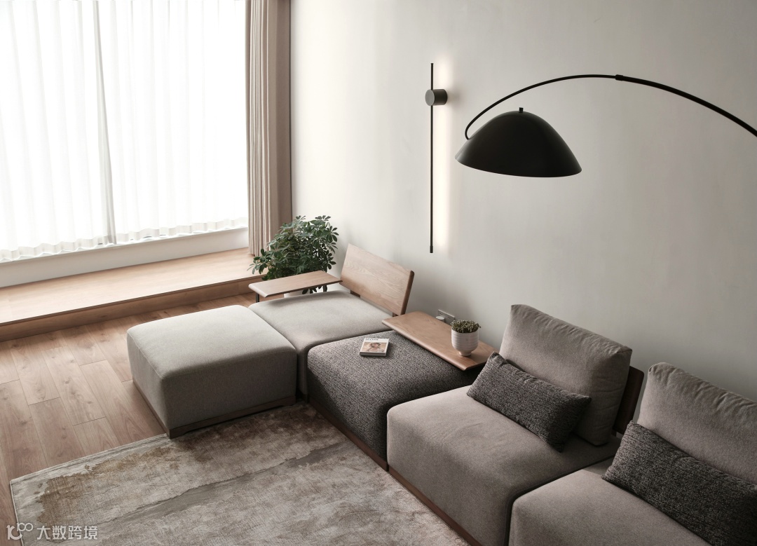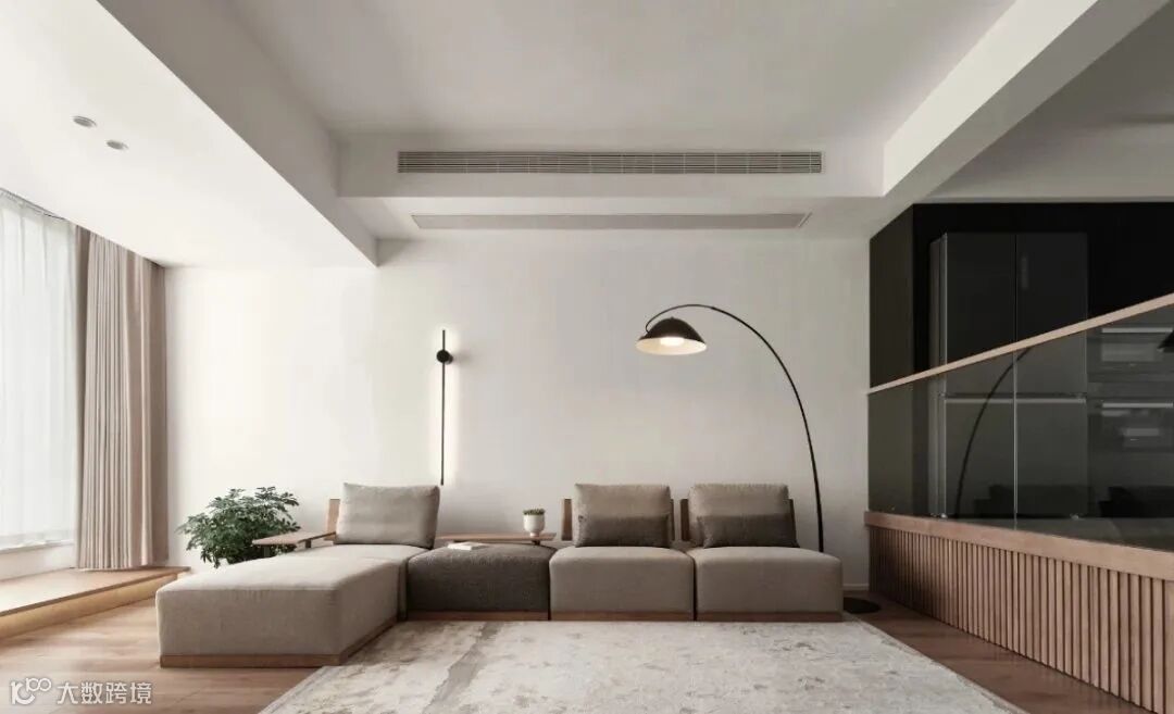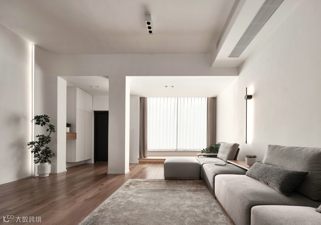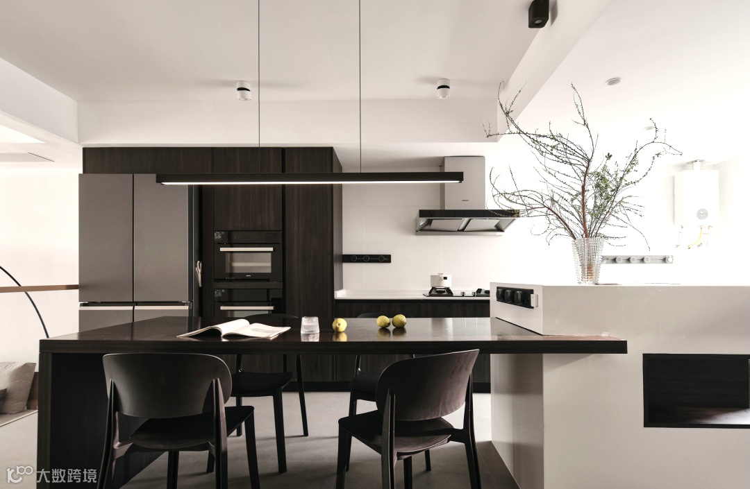 客厅留出了开阔的空间让人心情舒畅,公共活动区包括开放式厨餐厅,大人在厨房准备美味的食物,孩子在客厅观影玩耍,家人之间互动亲密,散发温柔气质。