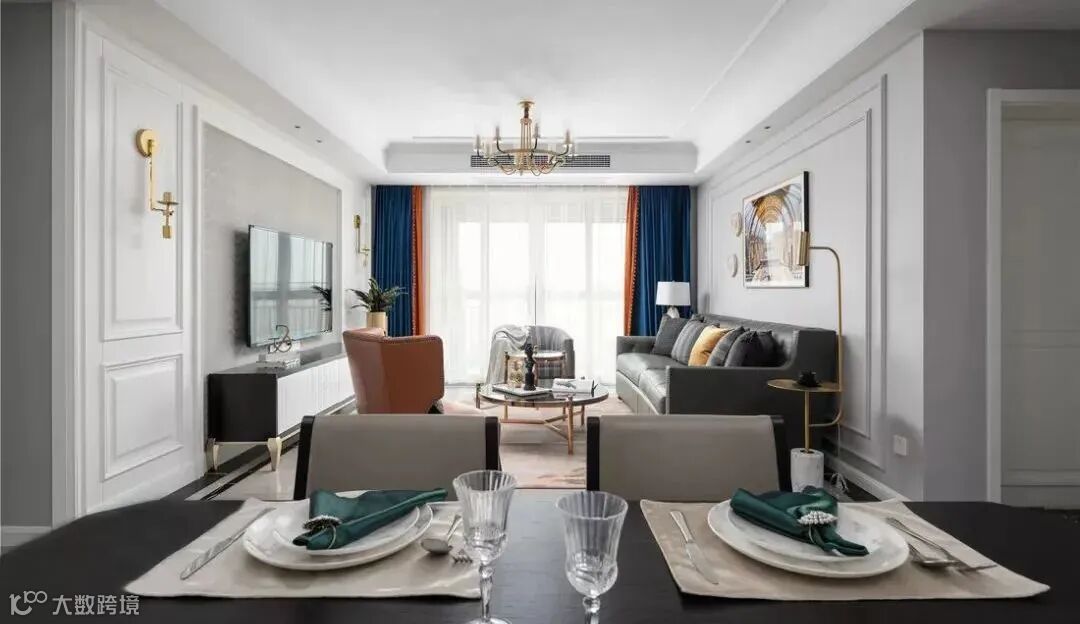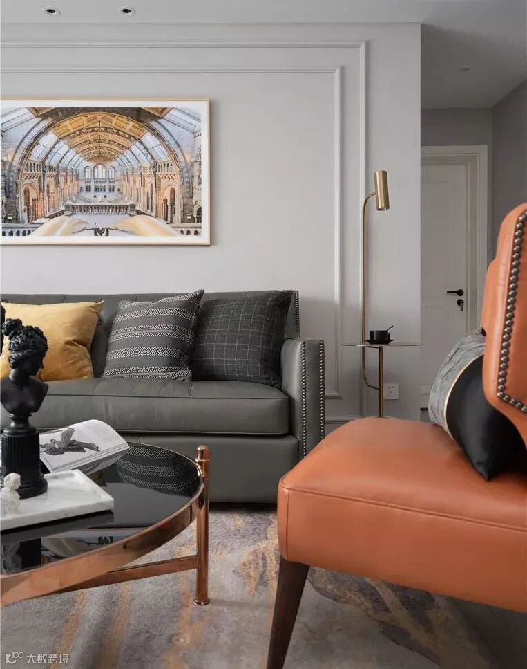 本案摈弃了传统美式风格中厚重、怀旧的特点,运用简洁线条、采用灰色系,搭配轻奢元素,共同演绎典雅而不奢华的美学空间。