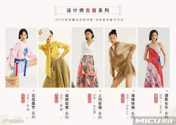 此次吉服的设计分别以花筑盛世、锦绣如意、上河安福、海错祥瑞、酒歌长乐为主题,引领了美学复兴的行动。