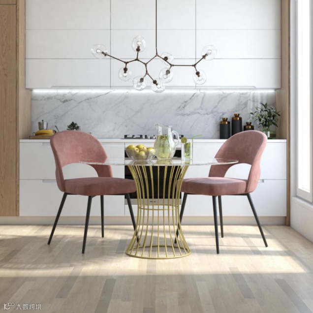 同样白色系餐桌椅,拥有金属元素的点缀