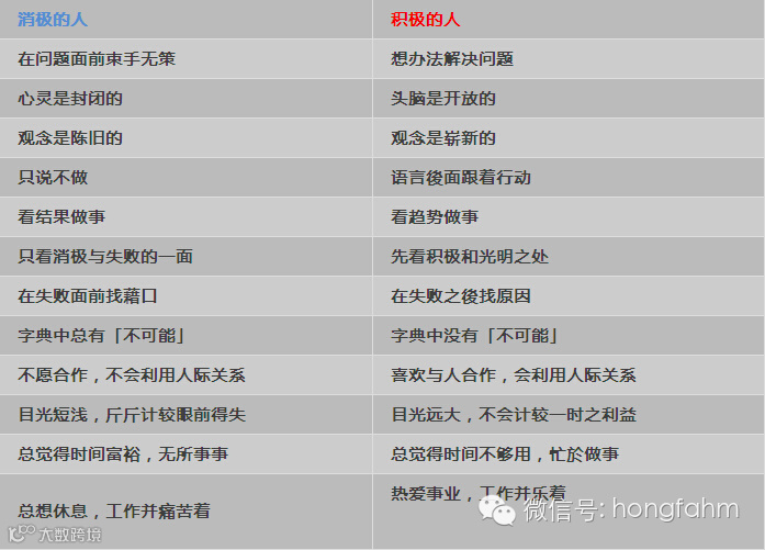 无数事例告诉我们,思维方式决定了一个人的命运和前途,今天我们就来看看消极的人和积极的人他们的思维方式有何不同?