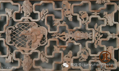灵芝纹:为菌类,生于枯木之上,质坚不腐,有青、赤、黄、白、黑、紫六色,冠呈半圆形,有云纹,冠及柄皆光泽如漆。今人以芝为仙草,故称芝仙、灵芝或灵草,服之能使人驻颜不老,起逝世复生。灵芝纹样多见于木雕,故修建、家具罕用灵芝纹作装潢,明代较写实,形象玲珑活泼,清代以后逐步趋势程式化,多堆砌,逝世板,失传统精髓。