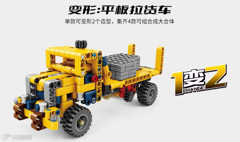 随着齿轮的转动,车斗结构可上下移动,模拟倾倒货物的快乐值得体会。变身平板拉货车不仅可以获得一个新玩具,还能get变形拼搭的丰富趣味。