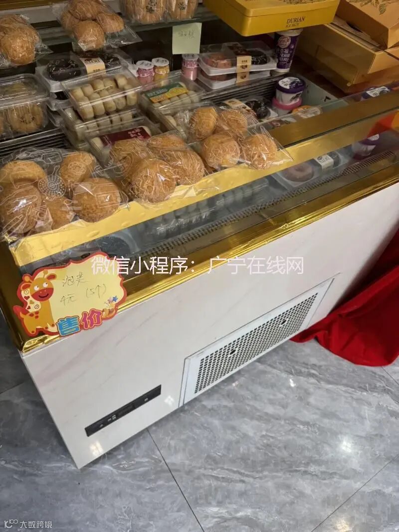 因搬迁转让面包柜包括面包所用到的,弧形面包柜一个,面包架4个,冰箱2个货,9成新,价格可议,射灯,广告牌,价格可议