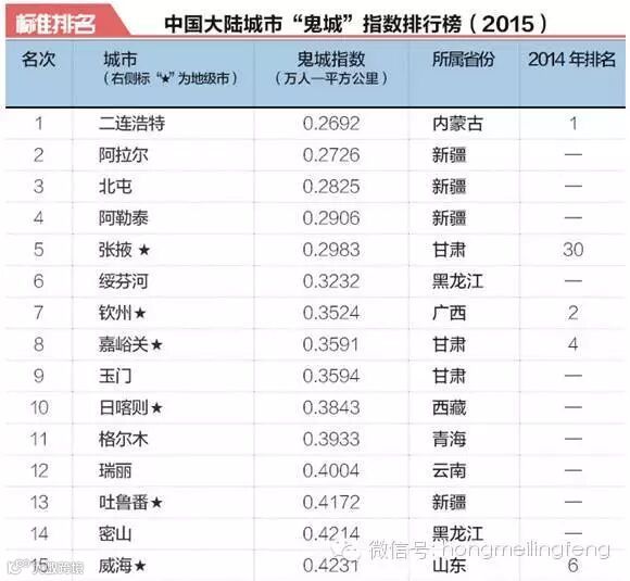 2015年中国50大“鬼城”排行榜最新出炉