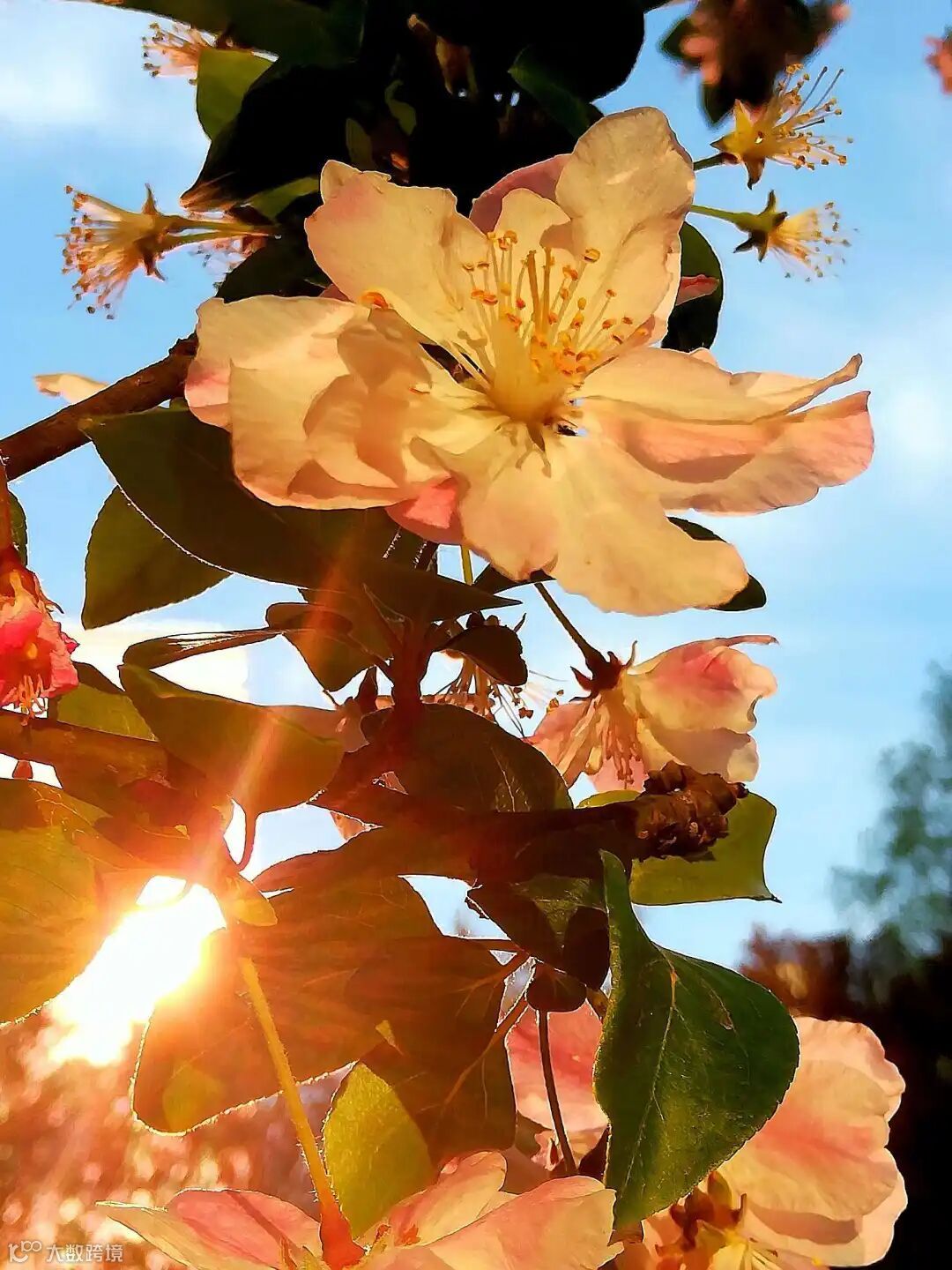 披着一道霞光