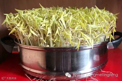 2、我用的是蒸锅的蒸架来发的,下面放一只蒸锅,这样每天浇水时滴下来的水正好在锅里,便于清理;