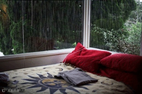 下雨的日子最适合窝在床上,隔着巨大的落地窗,看雨打芭蕉,看雨落成线。