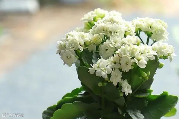 窗外,长寿花在雨中默默地开着,