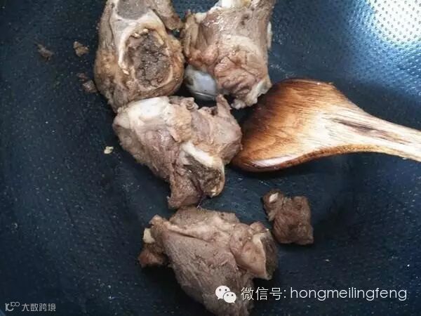 焯水沥干的棒骨,放入锅里干炒,加入适量盐、少许生抽和白醋,记得炒入味;
