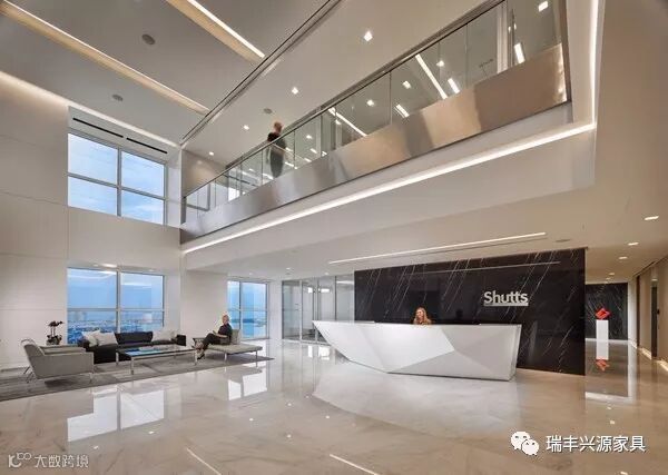 功能区域之间的分隔设计采用完全透明的玻璃隔断来区分。隔断框架同样采用灰色与环境主色协调。