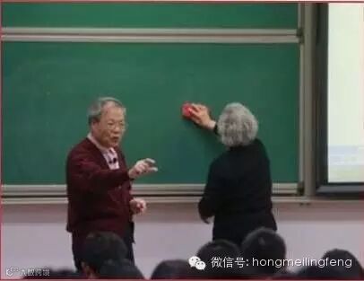 4老教授站在讲台上,老奶奶静静坐在一旁,根据讲授内容,不时展示课件。老教授是中科院教授吴乃虎,妻子是北大细胞遗传学教授黄美娟。两人相守已近50载,1994年后吴乃虎身体不太好,黄美娟坚持为他擦黑板。