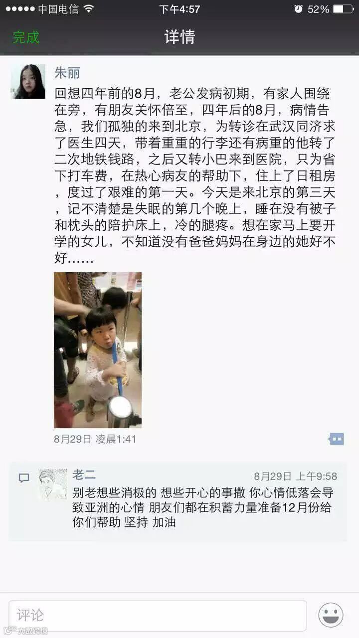 然而就在今年8月,更大的厄运向他们袭来,在每月一次的检查中,医生告知癌细胞指数再次超标,白血病复发,要立即转往北京,控制病情后赶快移植,否则就只有永别了!