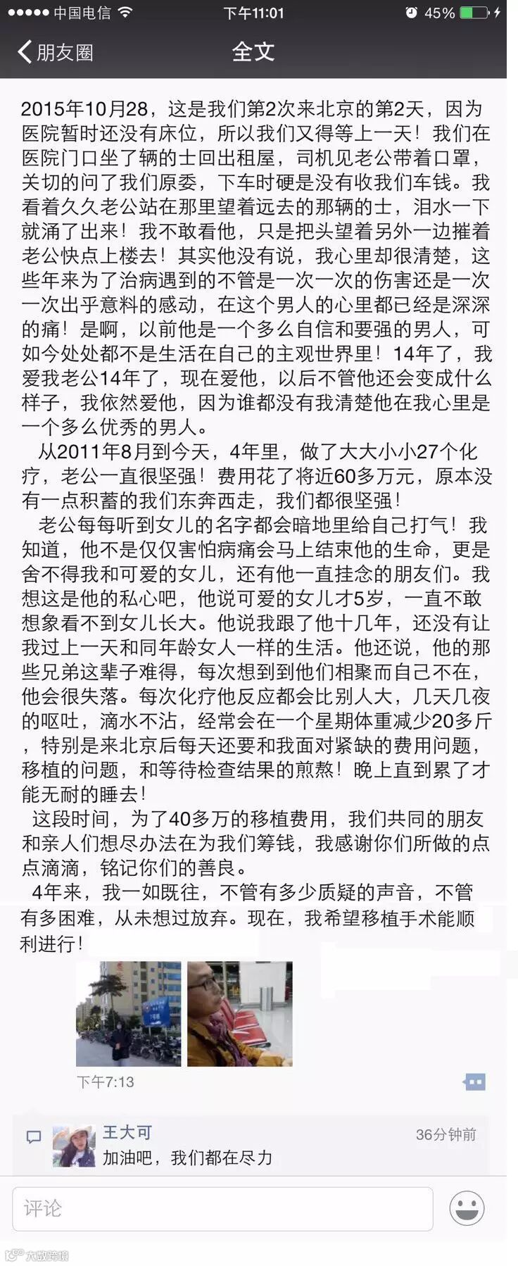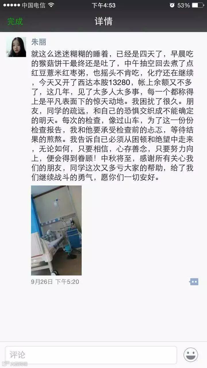 这个晴天霹雳使这个原本就风雨飘摇的家庭雪上加霜,也几乎快要将他打倒,因为没钱,他又一次错过了治疗时机,赶到北京时已经全身多处脏器受损,带去的资金远远不够,好在在亲戚朋友的帮助下他终于熬到了化疗的最后阶段,然而已是山穷水尽,走投无路。