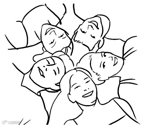 这个比起普通合影有趣一点。请所有人靠近,尤其是头部要靠拢多一些,并拥向镜头。