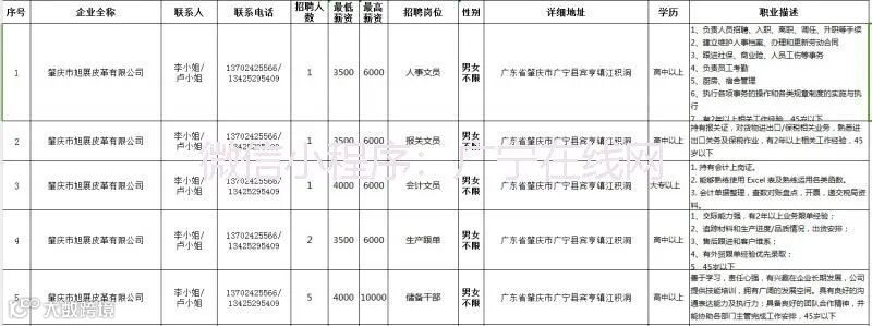 肇庆市旭展皮革有限公司是一家制造皮料的进出口公司,主要出口到东南亚地区,跟vans,ugg,timberland等知名品牌鞋厂合作,现因生产发展需要,现急聘请以下岗位:招临时工5名,男女不限,15元/小时,包吃,年前结清工资