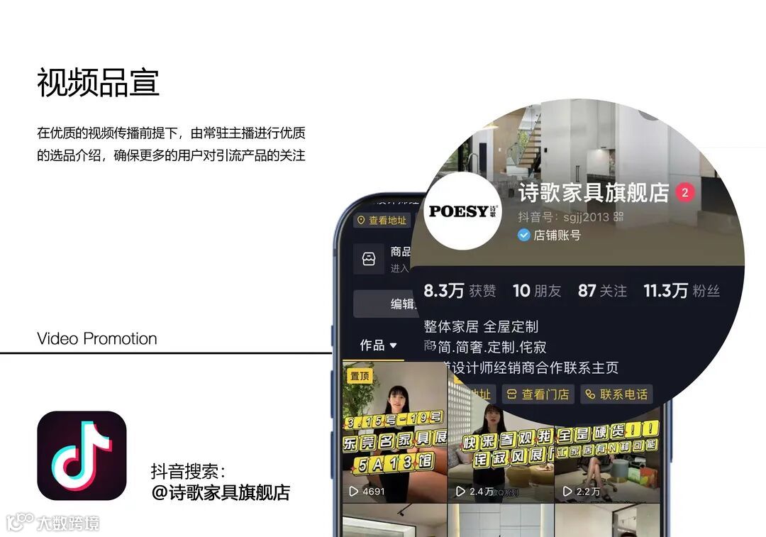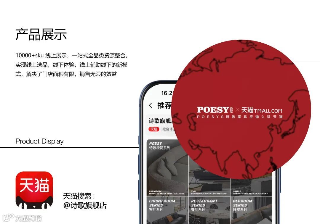 开设天猫旗舰店铺,依托线上产品展示,线下门店赋能、引流,实现线上选品,线下下单的模式,解决了门店面积有限,销售无限的效益