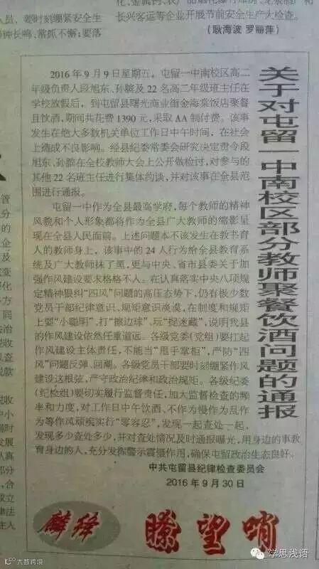 1、屯留一中是县最高学府,每位教师的精神和风貌是全县广大教师的缩影,所以聚众校外进餐饮酒给教师抹了黑;