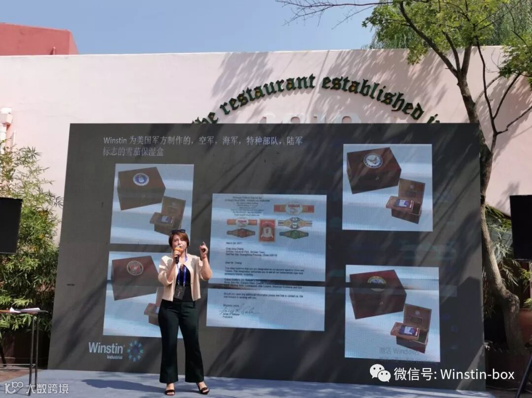 活动中,我司总经理Linda女士也受邀上台为参加活动的佳宾介绍我司的相关简介级产品介绍。期中也特别介绍到我司为美国43、44、45任总统特制的雪茄盒,美国军种雪茄及为德国施坦威钢琴在中国深圳音乐厅旗舰店定制VIP室装修及会议桌,获得现场的来宾的一致好评。
