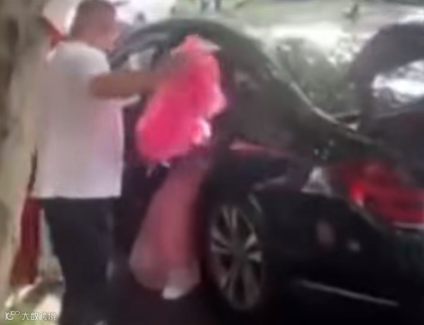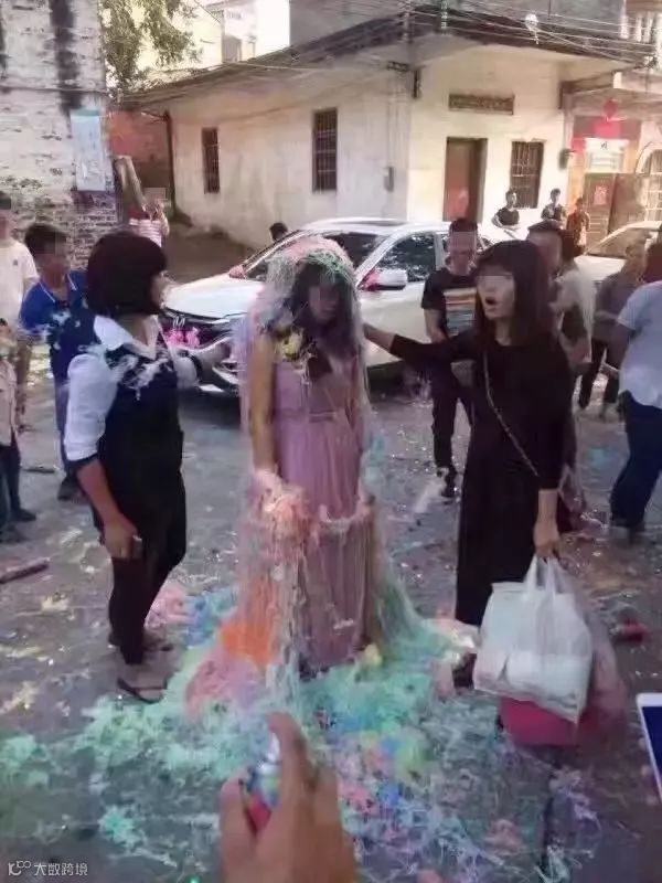 以及有人试图撕开伴娘“雨衣”的行为看
