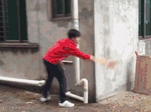 鞭炮丢进屋里火光四射