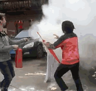 拿着灭火器对着伴娘身上狂喷?