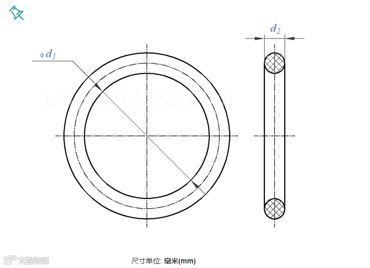 内径 d1 、截面直径 d2 和 公差