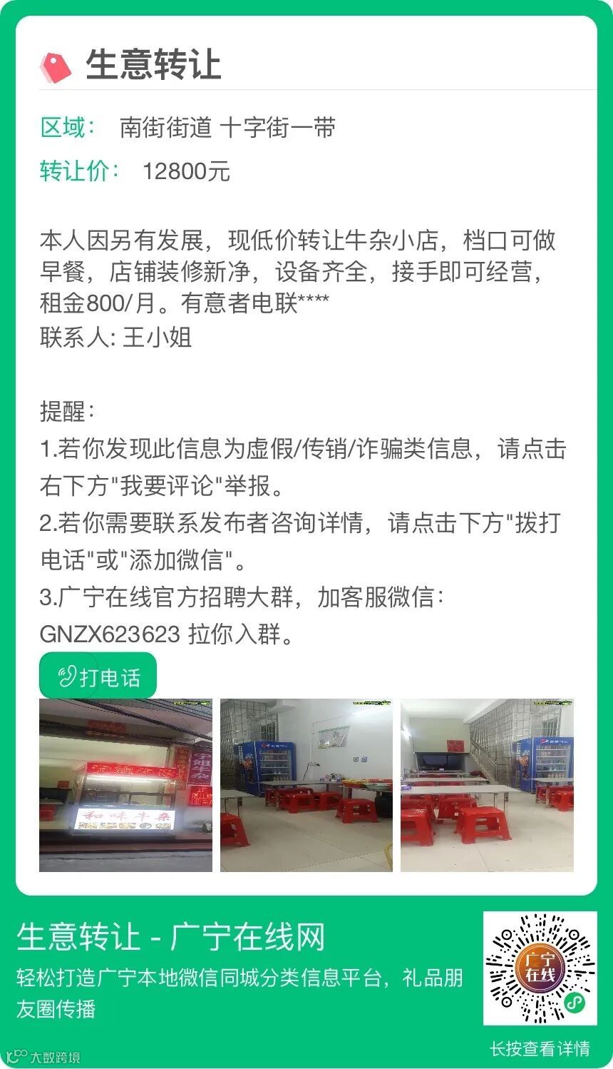 【1.28万生意转让】店主因另有发展,现低价转让牛杂小店,档口可做早餐,店铺装修新净,设备齐全