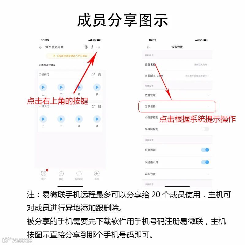 第二:注册成功后就可以在配置的那部手机里对设备进行分享。