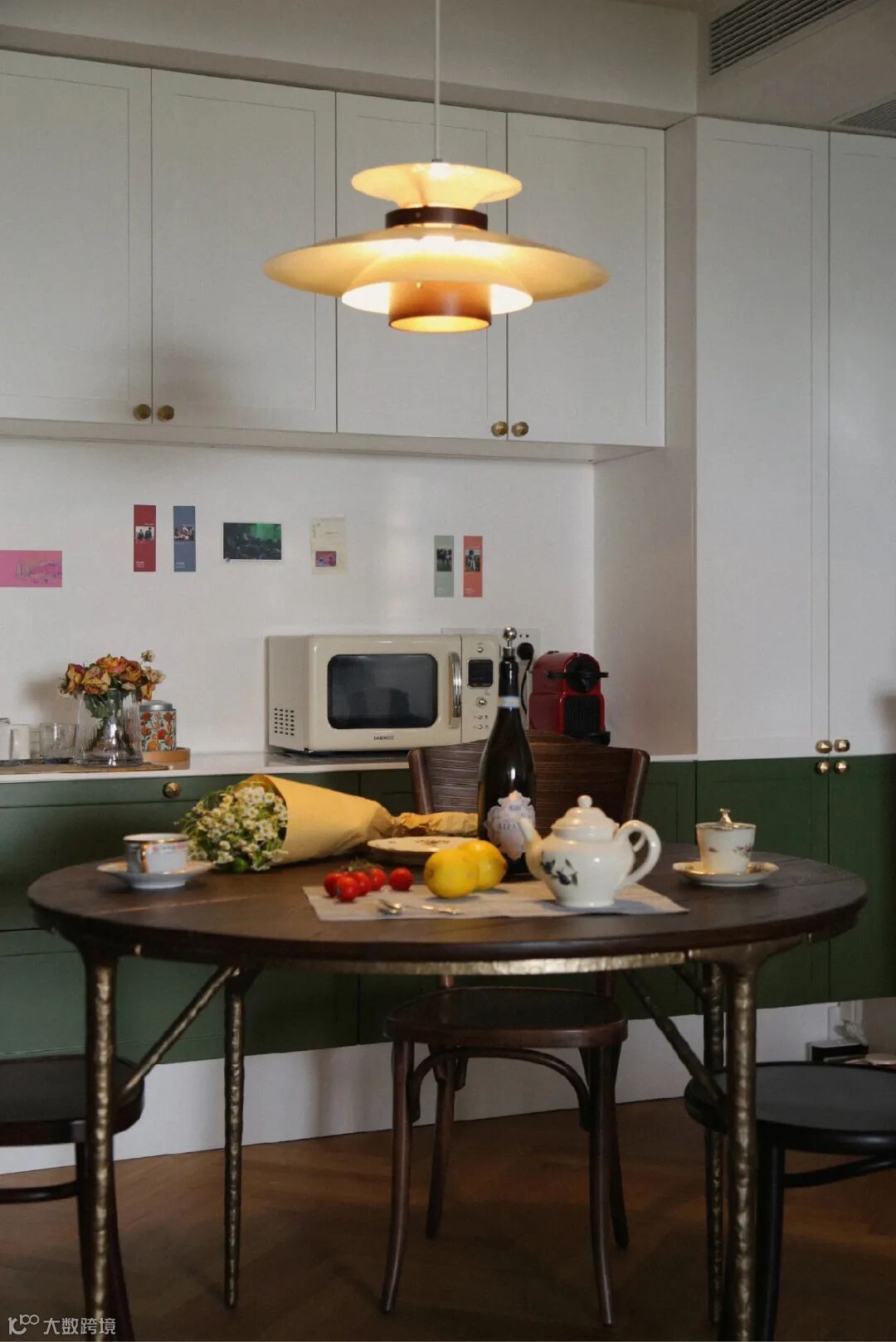 除此之外,圆桌能有效地利用空间。温柔的圆弧毫无攻击性,能容纳更多的人灵活就坐,即便是在小餐厅,也能轻松摆放。因此,也受到了很多家庭的偏爱。