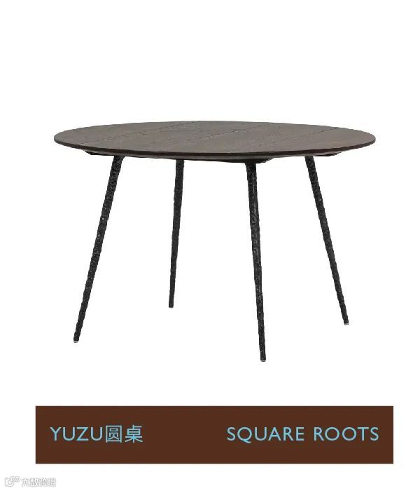 YUZU圆桌,是SQUARE ROOTS的明星之作,1.2米的宽阔桌面,搭配颇有贾科梅蒂雕塑风格的手捏铸铁腿,结构稳固,桌腿下空间充裕。桌面传统伸缩缝,能有效减少实木湿胀干缩。经典的蝴蝶榫加固,别具辨识度。