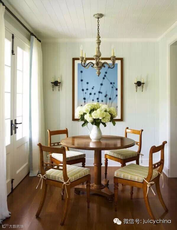 法式乡村风格多采用淡雅自然的颜色组合,例如米白色/奶油色/米黄色/淡棕色/淡蓝色/水粉色/灰色等低纯度色彩,营造休闲/宁静和高贵的法式风情。