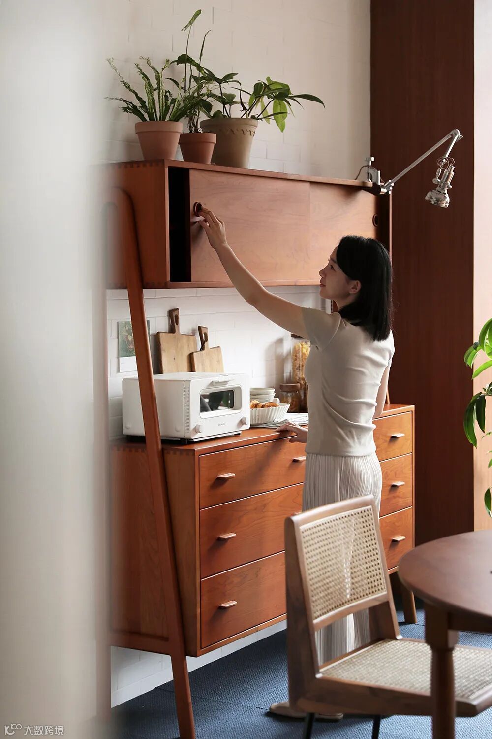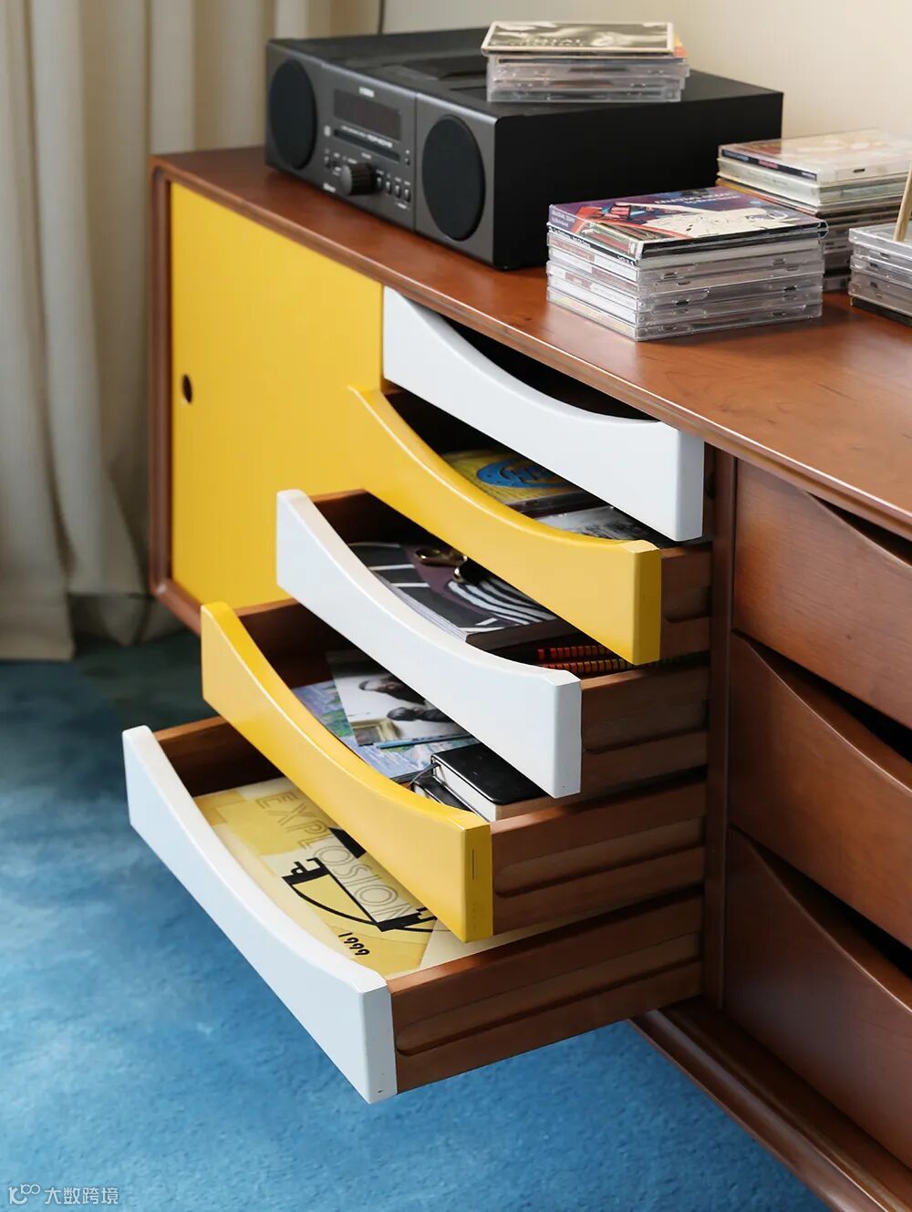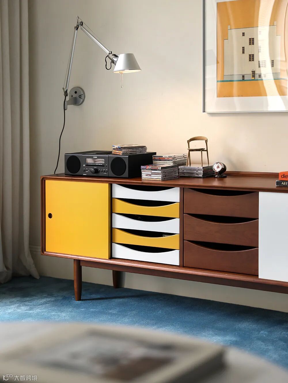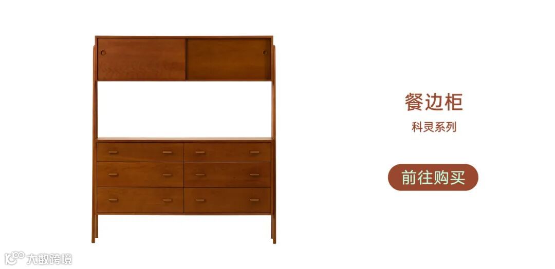 摆在家里任何位置都会出彩的边柜,汇聚了丹麦知名建筑师Arne Vodder的经典元素:拼色柜门与月牙形抽屉,轻松打造北欧中古风的家。