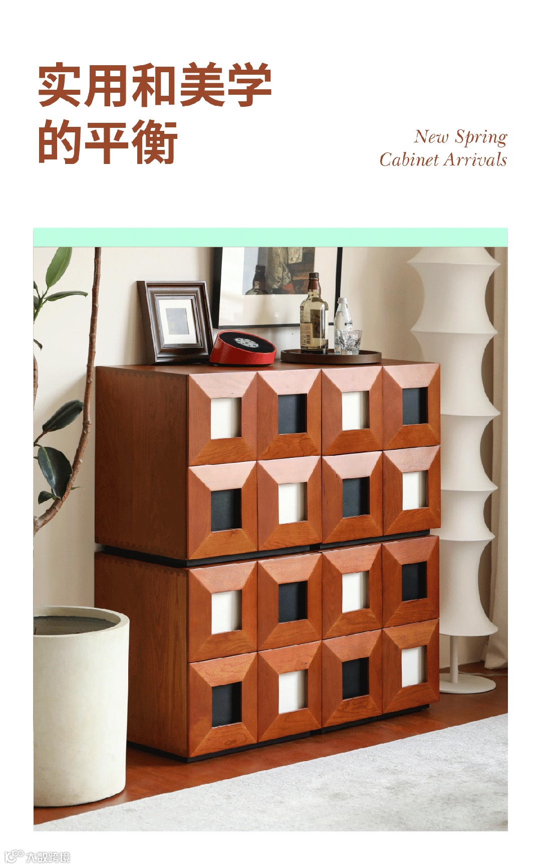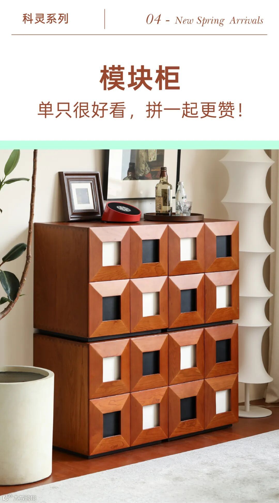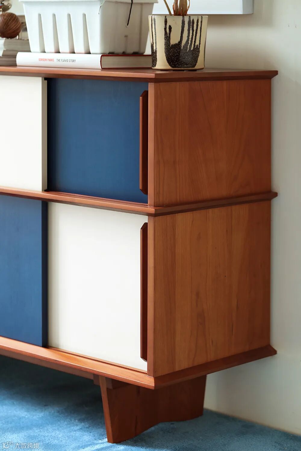如果你家走的是北欧中古风,那么能为风格一锤定音的小边柜就是它了。灵感源自丹麦知名建筑师Arne Vodder的经典元素:拼色柜门。