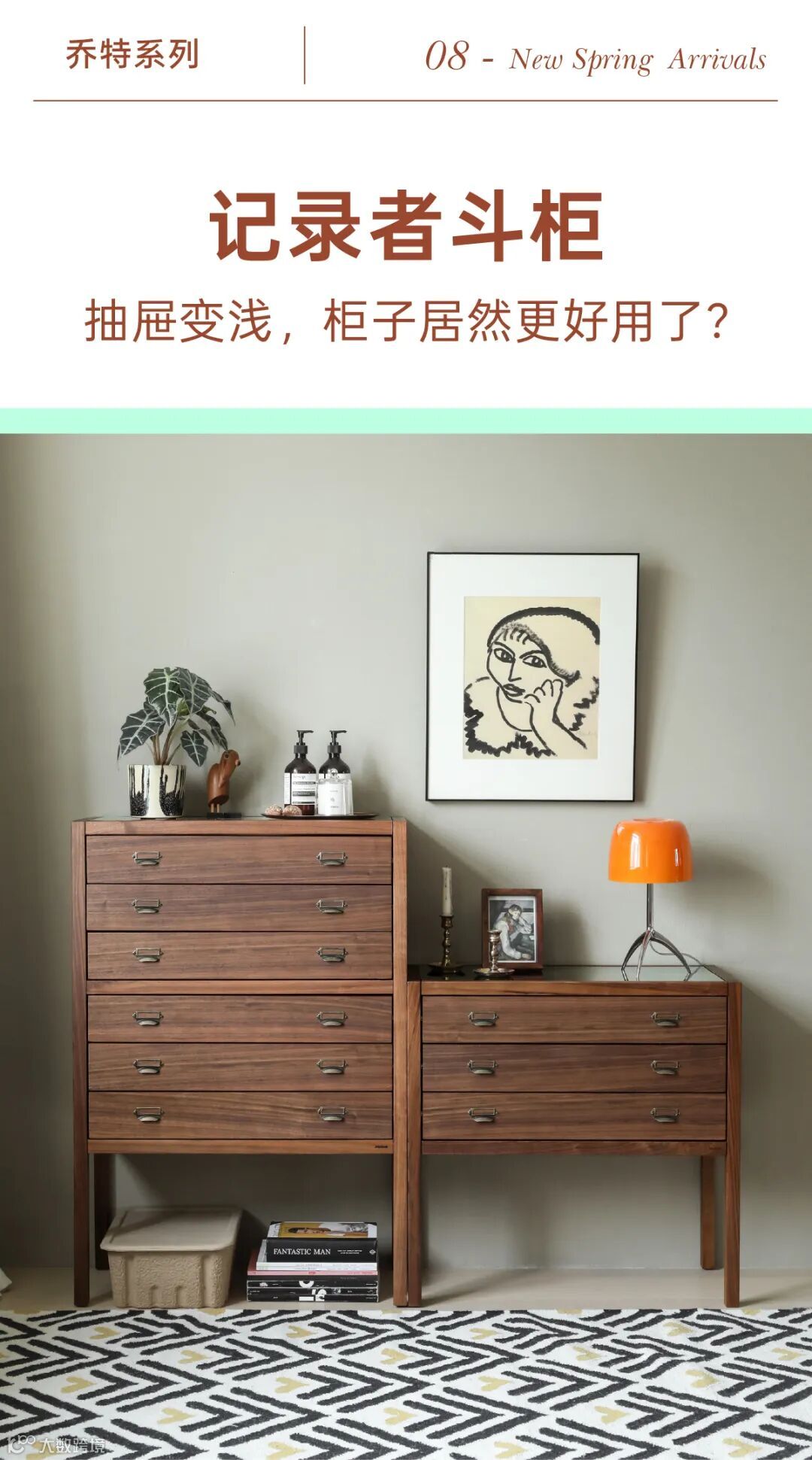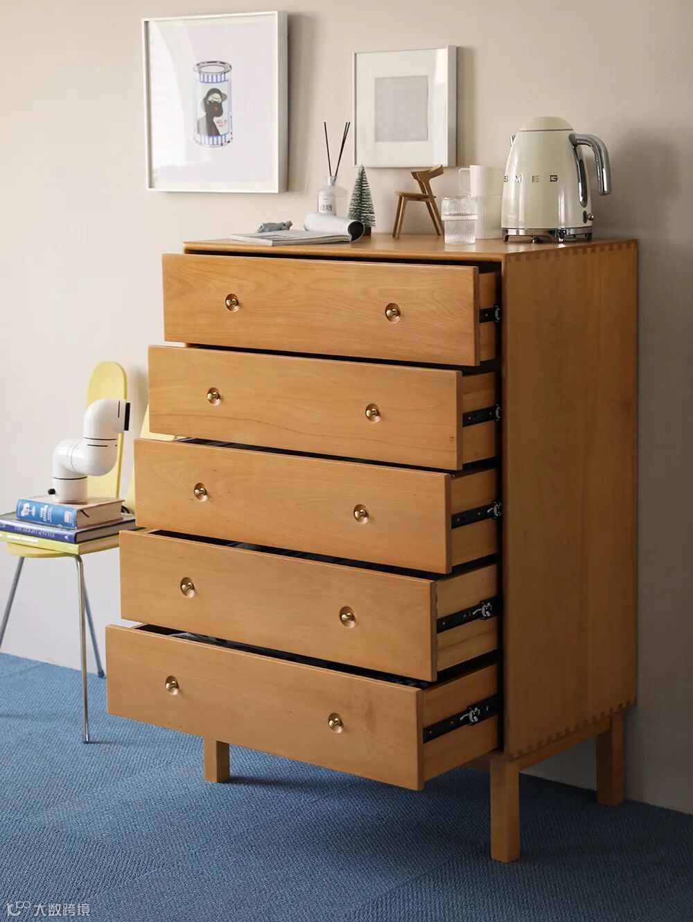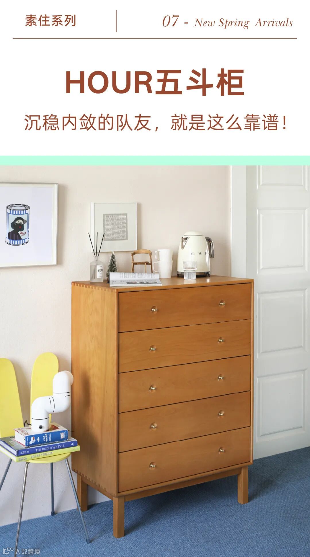 传统家里常见的经典五斗柜,占地面积不足0.36㎡,却能放下好多东西,是名副其实的收纳高手。
